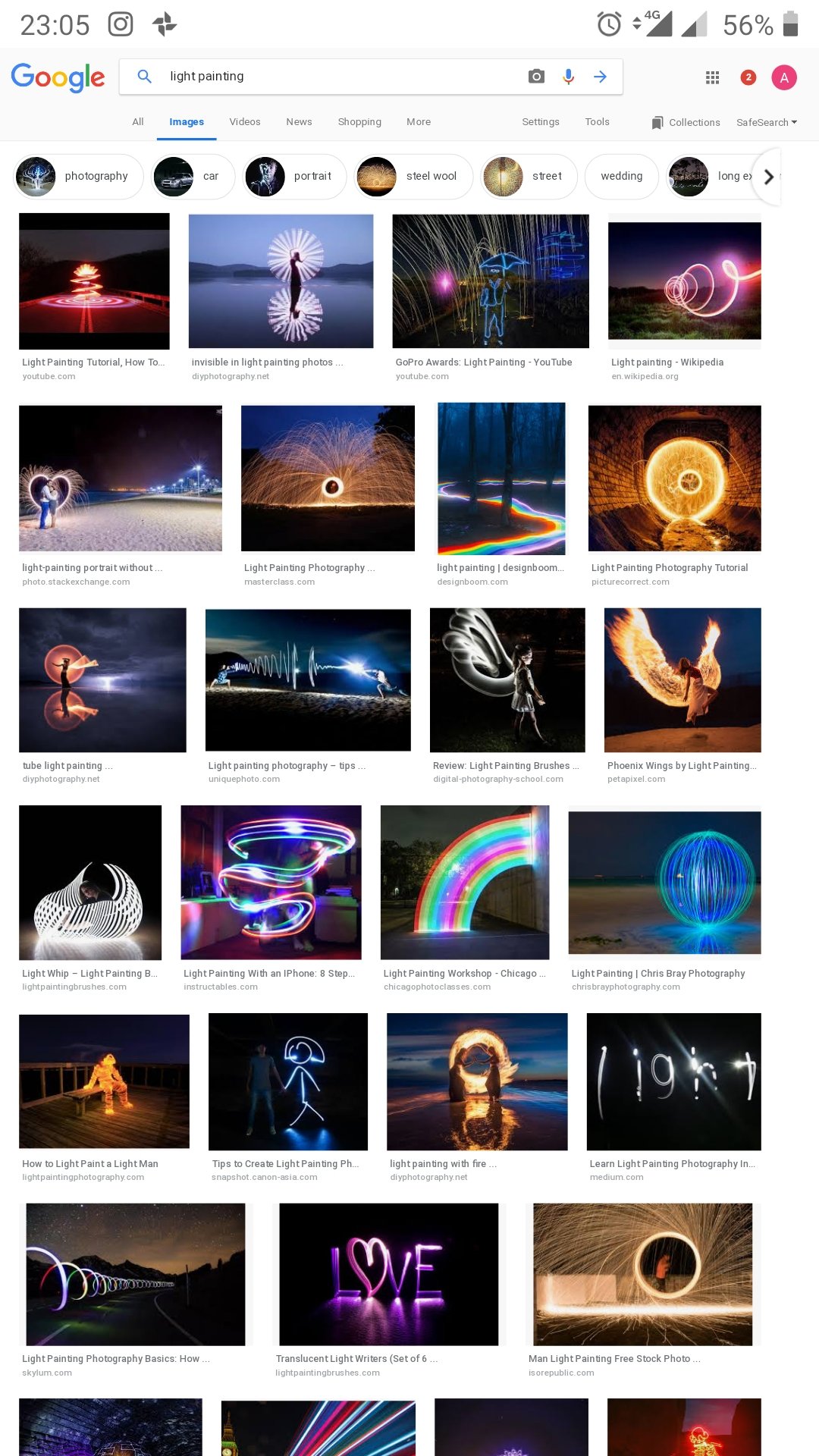 Negli anni il light painting si è sviluppato in numerose varianti anche grazie all’abbondanza di tipologie di sorgenti luminose: è sufficiente una ricerca su Google per rendersi conto delle numerose declinazioni esistenti.